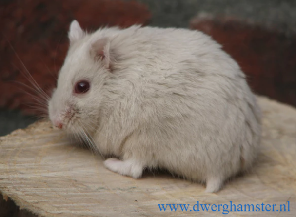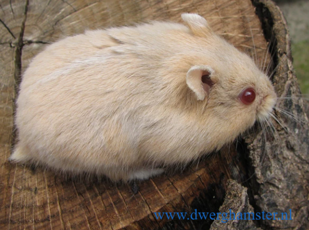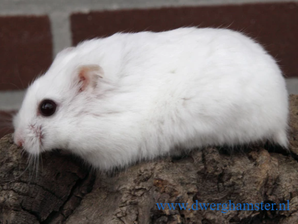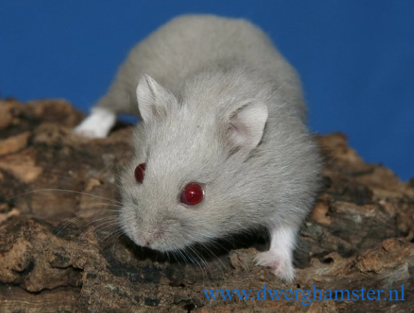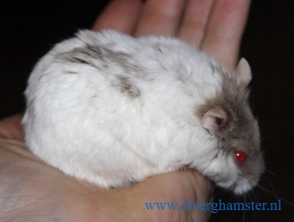 Wenn der Campbelli-Zwerghamster zwei Platinum-Gene erbt, ist er komplett weiss. Die Augenfarbe ist schwarz.