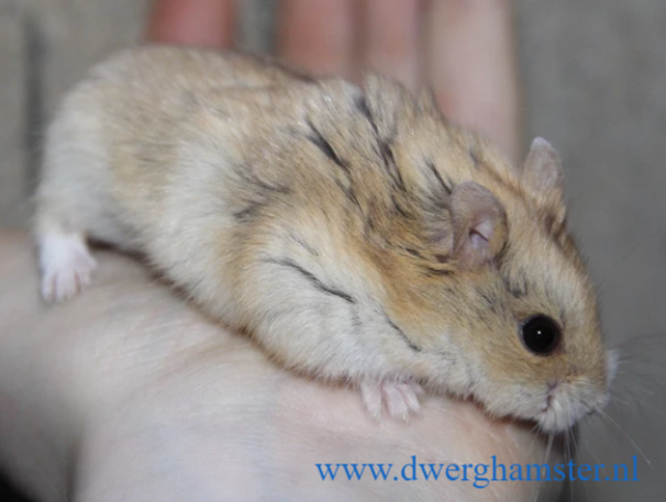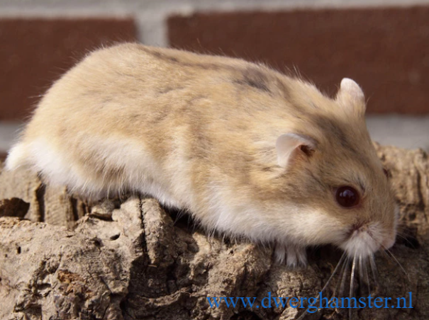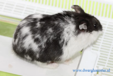 Das Junge wird mit verschiedenen Flecken geboren, doch im Gegensatz zum Fleckenfleck sind die Flecken verstreut und schwer zu finden. Meistens ist der Hals und das Kinn bis zur Brust weiss. Wenn der Hamster älter wird, wird sein Rücken allmählich heller und im Alter kann er einen völlig weißen Rücken haben.