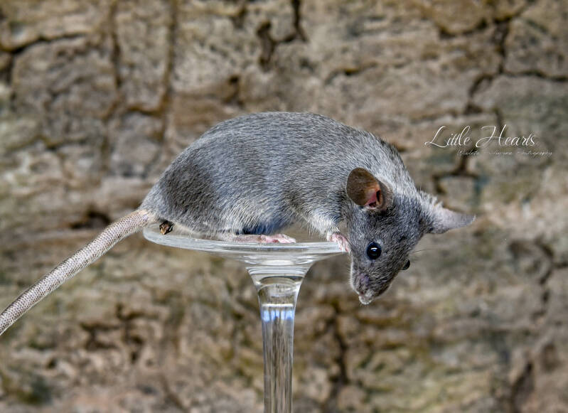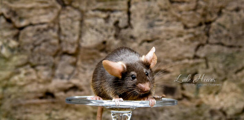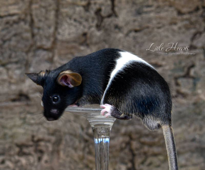 Hairless (nu) - Die haarlose Maus soll so haarlos wie möglich sein. Die Haut muss dünn, sauber, teilweise durchscheinend und ohne Schnitte oder Druckstellen sein. Die Haut kann jede standardisierte Farbe und/oder Zeichnung haben. Die Haut wird mit zunehmendem Alter der Maus heller.“ Zu berücksichtigen ist die übermäßige Faltenbildung, die der Färbung entspricht. Die Ohren sind groß und frei von Falten oder Fetten